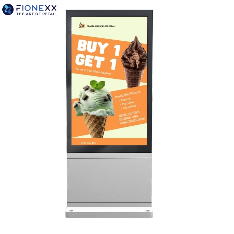 Seja como parte de uma exibição à beira da rua ou como uma tela individual única, a solução oferece uma ampla gama de aplicações possíveis. A flexibilidade de uso em formato retrato ou paisagem e a ampla gama de telas as tornam o acompanhamento perfeito para nossas telas digitais externas sem ventoinha.